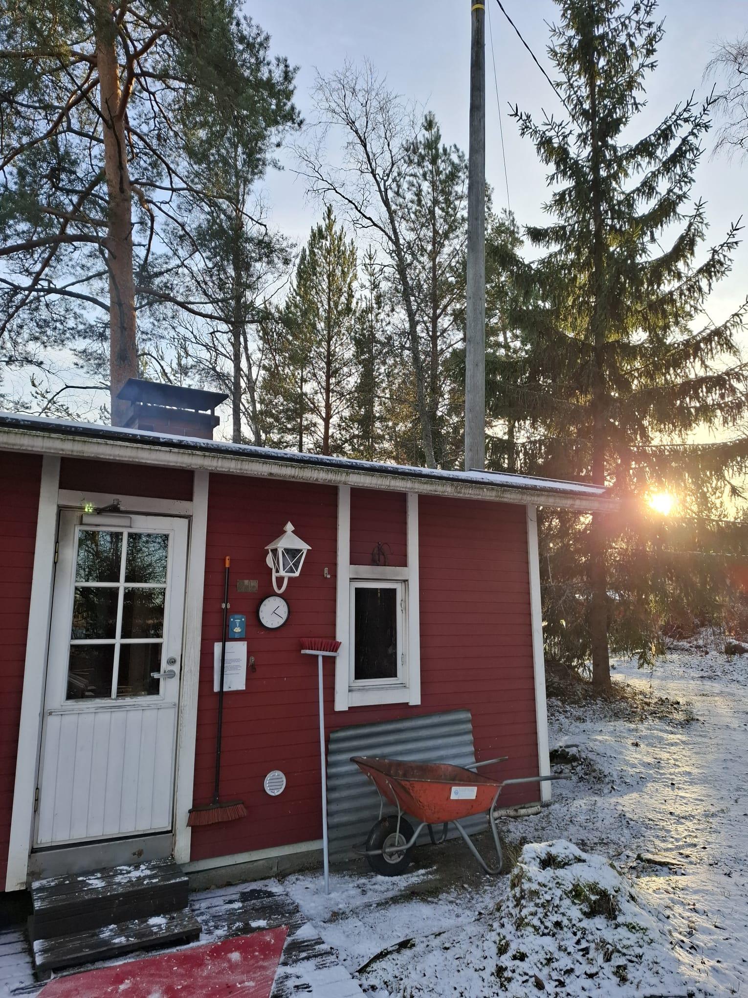 Alueella kaadettiin kaksi koivua, jotka hakattiin klapeiksi, saunojen lämmittämiseen. Uikkarisauna onkin lämmennyt miltei joka ilta, iso sauna kerran viikossa. Saunaranta on niin kaunis.