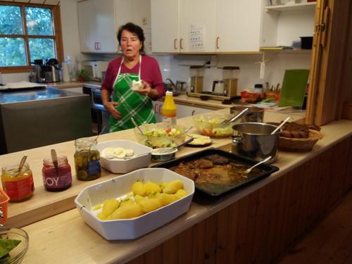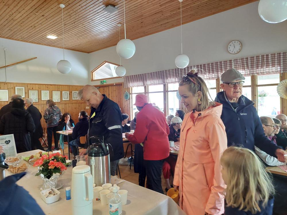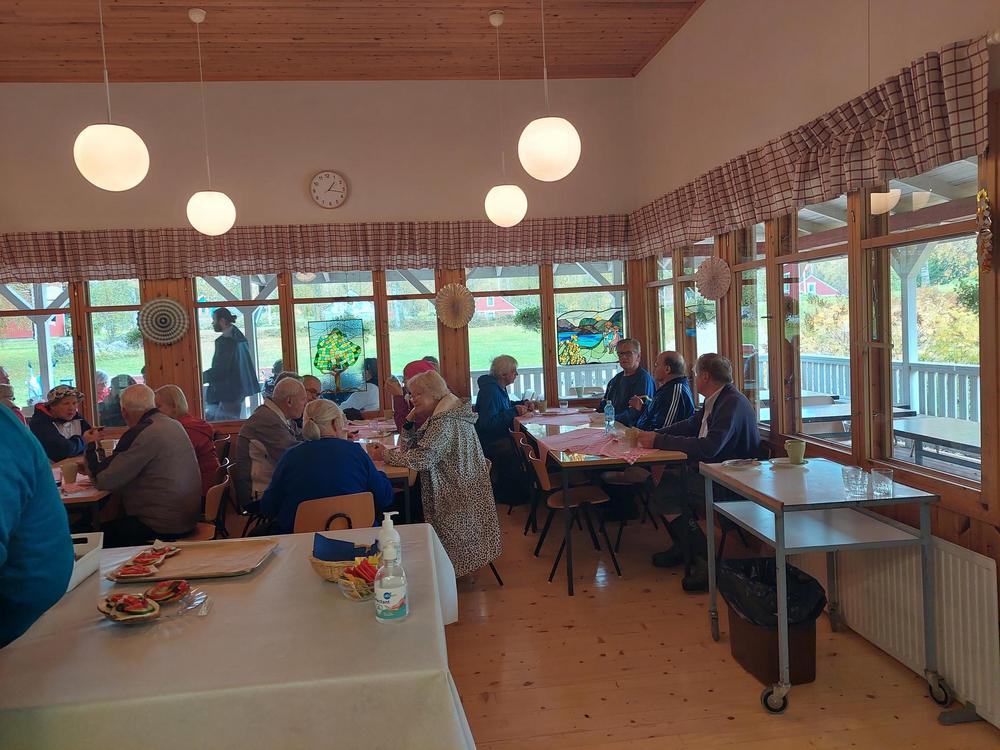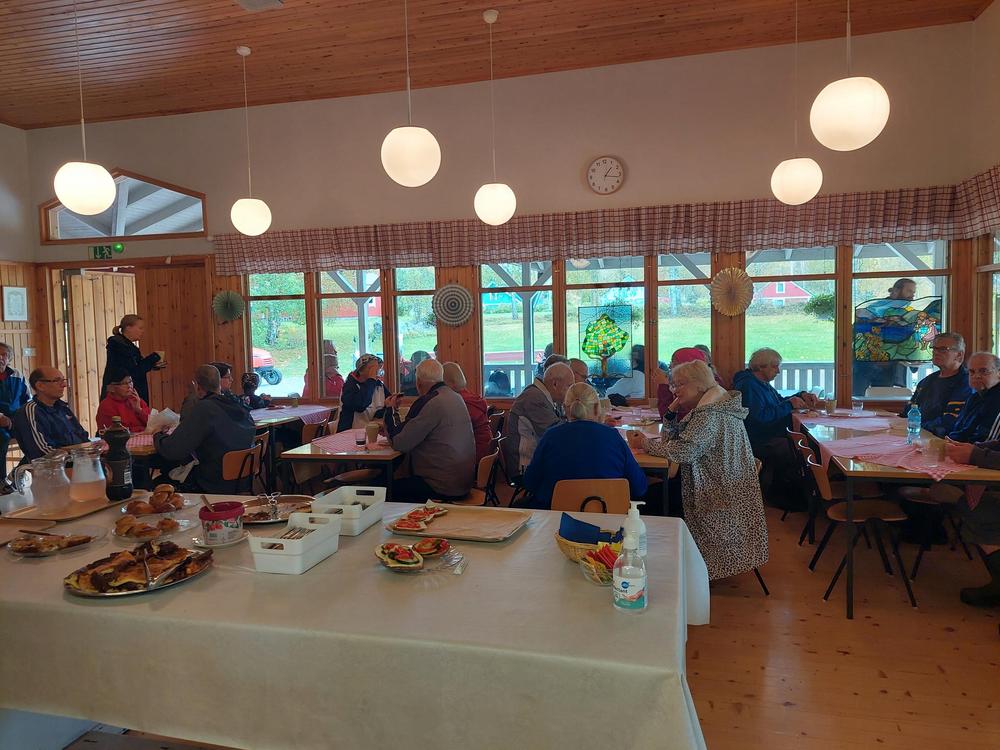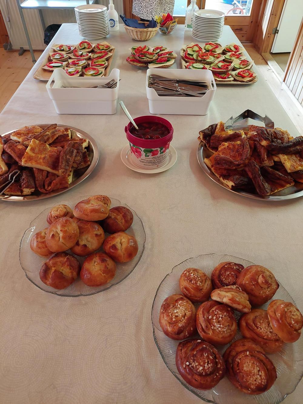Piknikin jälkeen kutsuttiin koko porukka juhlakahveille. Tarjolla oli erinomaista mansikkakakkua.
