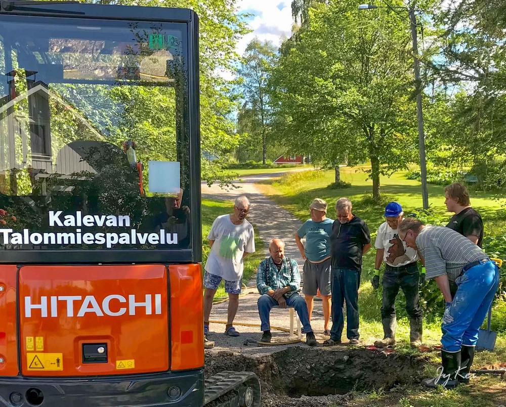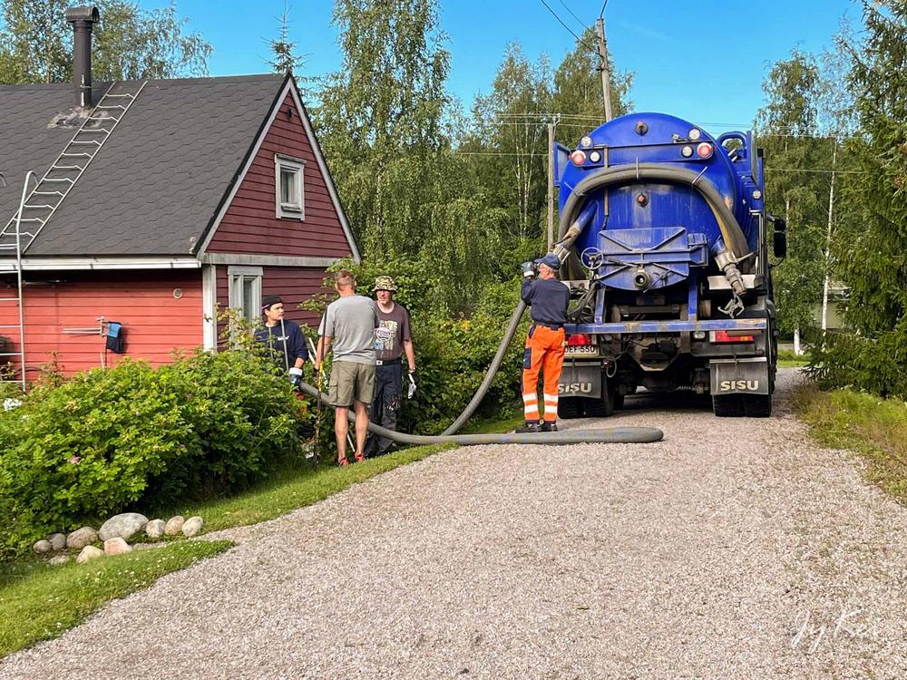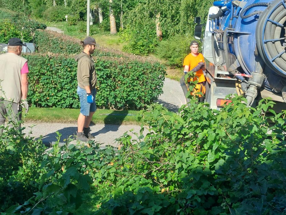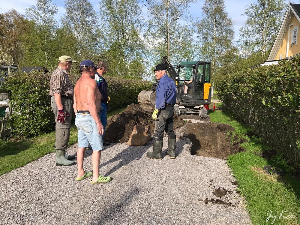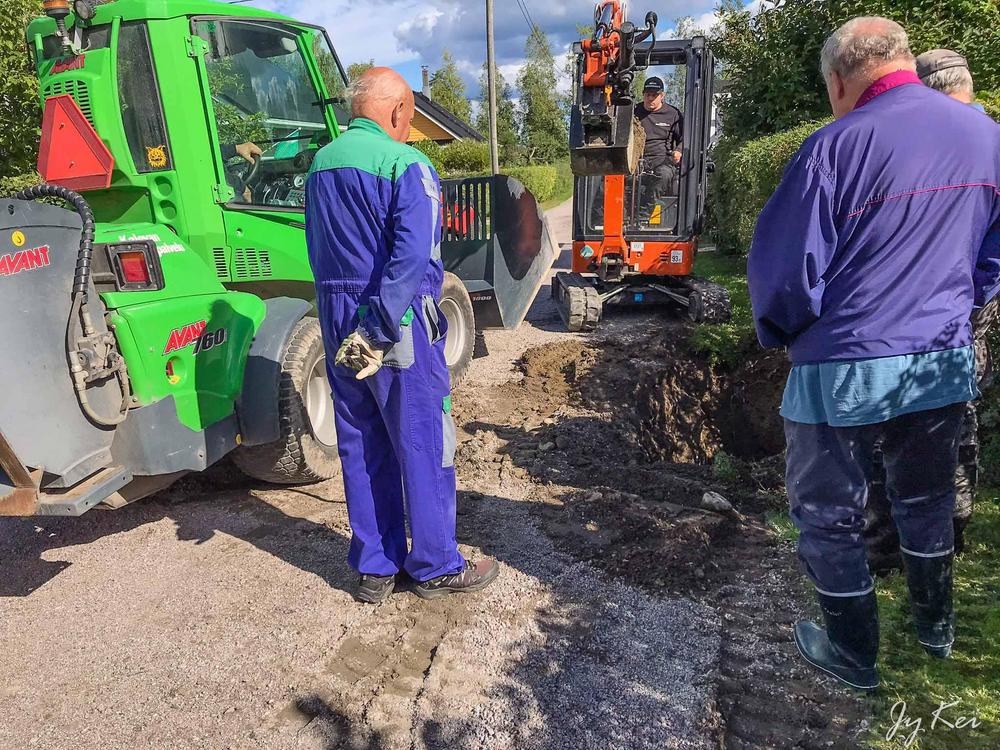 Tänäkään kesänä ei putkirikoilta vältytty. Juuri juhannuksen alla niitä sattui yhtä aikaa kaksi, joten koko alueelta jouduttiin sulkemaan vesiverkko miltei vuorokaudeksi. Kiitos ahkerien kaivajien ja kaivurin käyttäjän saimme taas veden hanoihin.