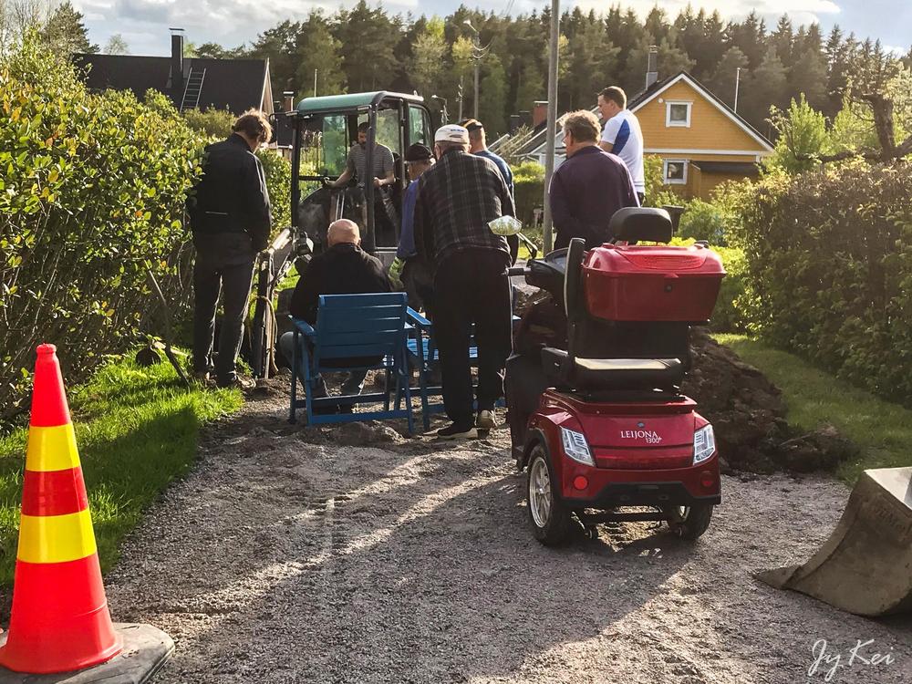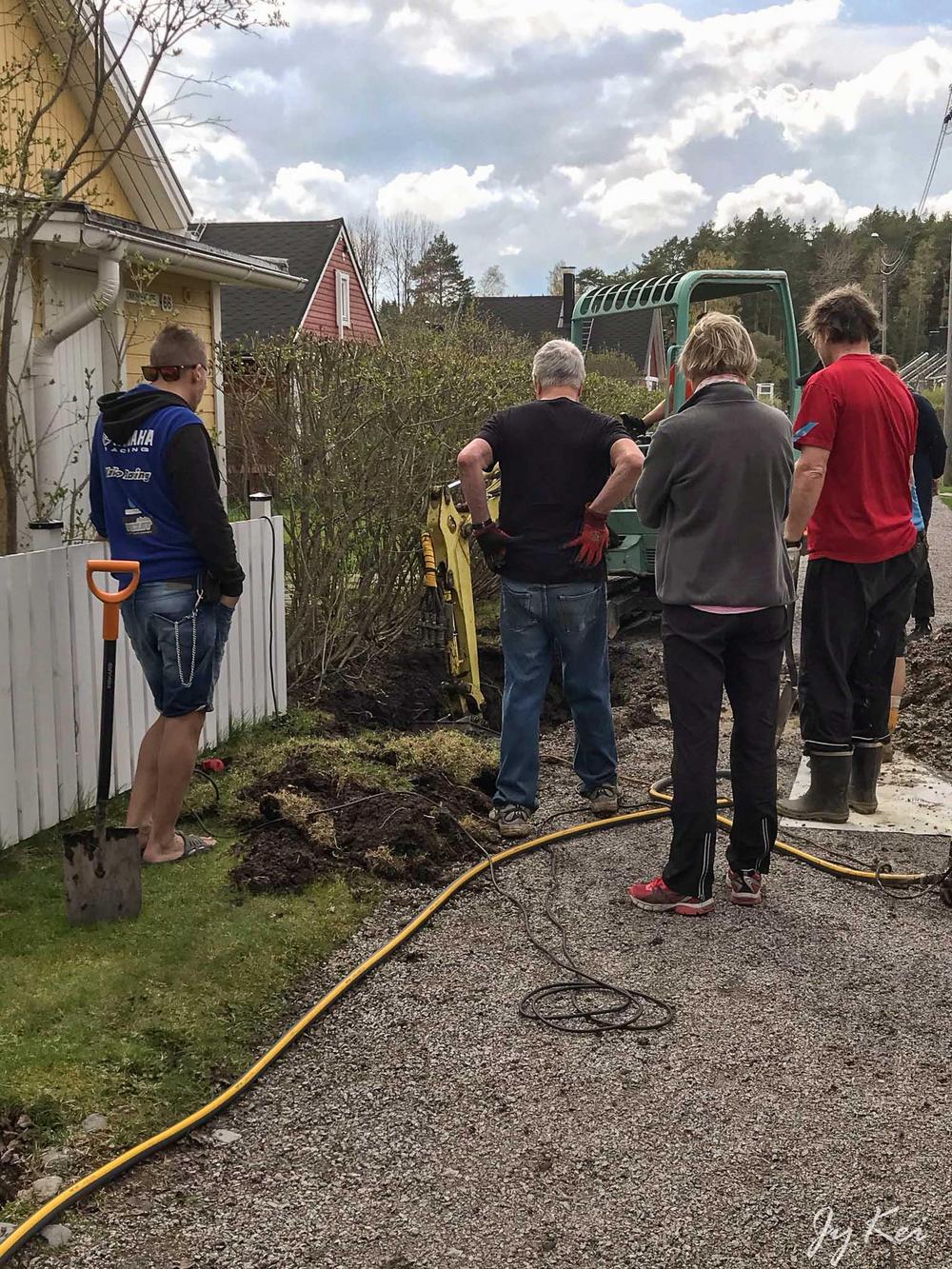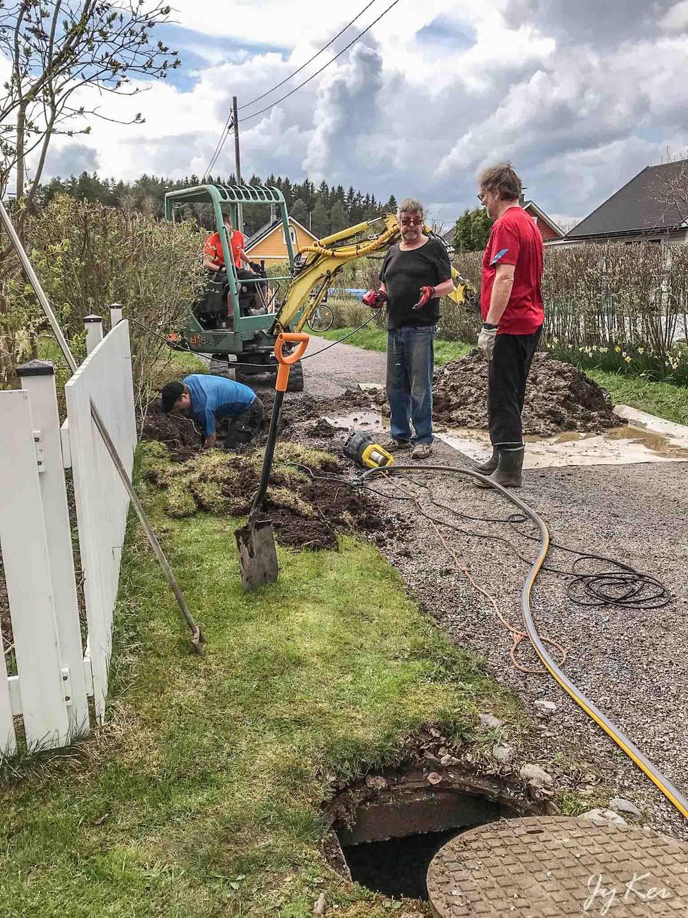 Tänäkään kesänä ei putkirikoilta vältytty. Juuri juhannuksen alla niitä sattui yhtä aikaa kaksi, joten koko alueelta jouduttiin sulkemaan vesiverkko miltei vuorokaudeksi. Kiitos ahkerien kaivajien ja kaivurin käyttäjän saimme taas veden hanoihin.