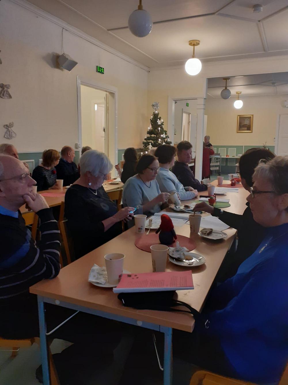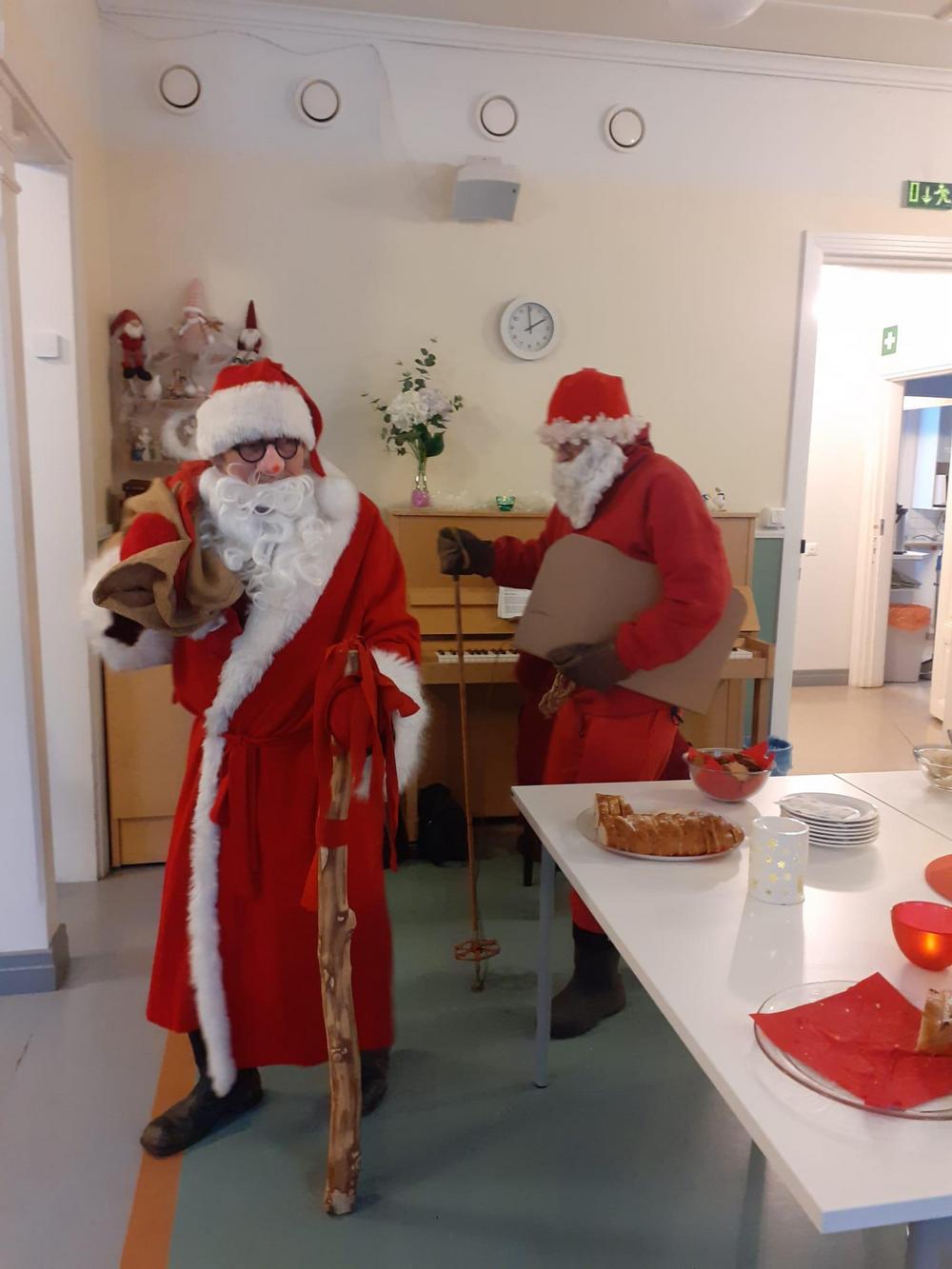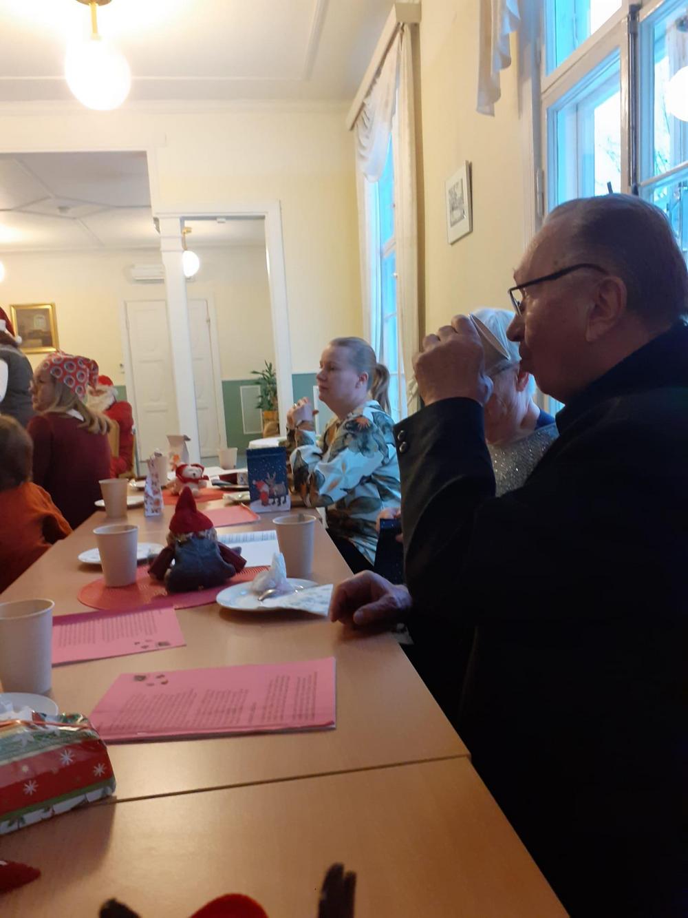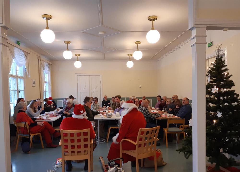 Parin Korona vuoden jälkeen vietimme perinteistä joulujuhlaa Takahuhdin seurakuntatalolla joulupukkineen, joululauluineen. Myrskyisen lumisateen keskelläkin oli osallistujia mukavasti tullut paikalle.
