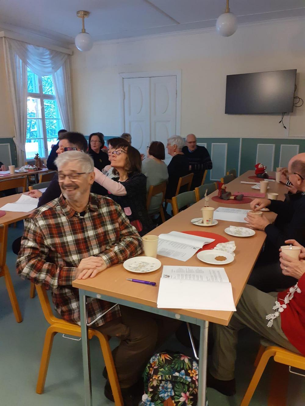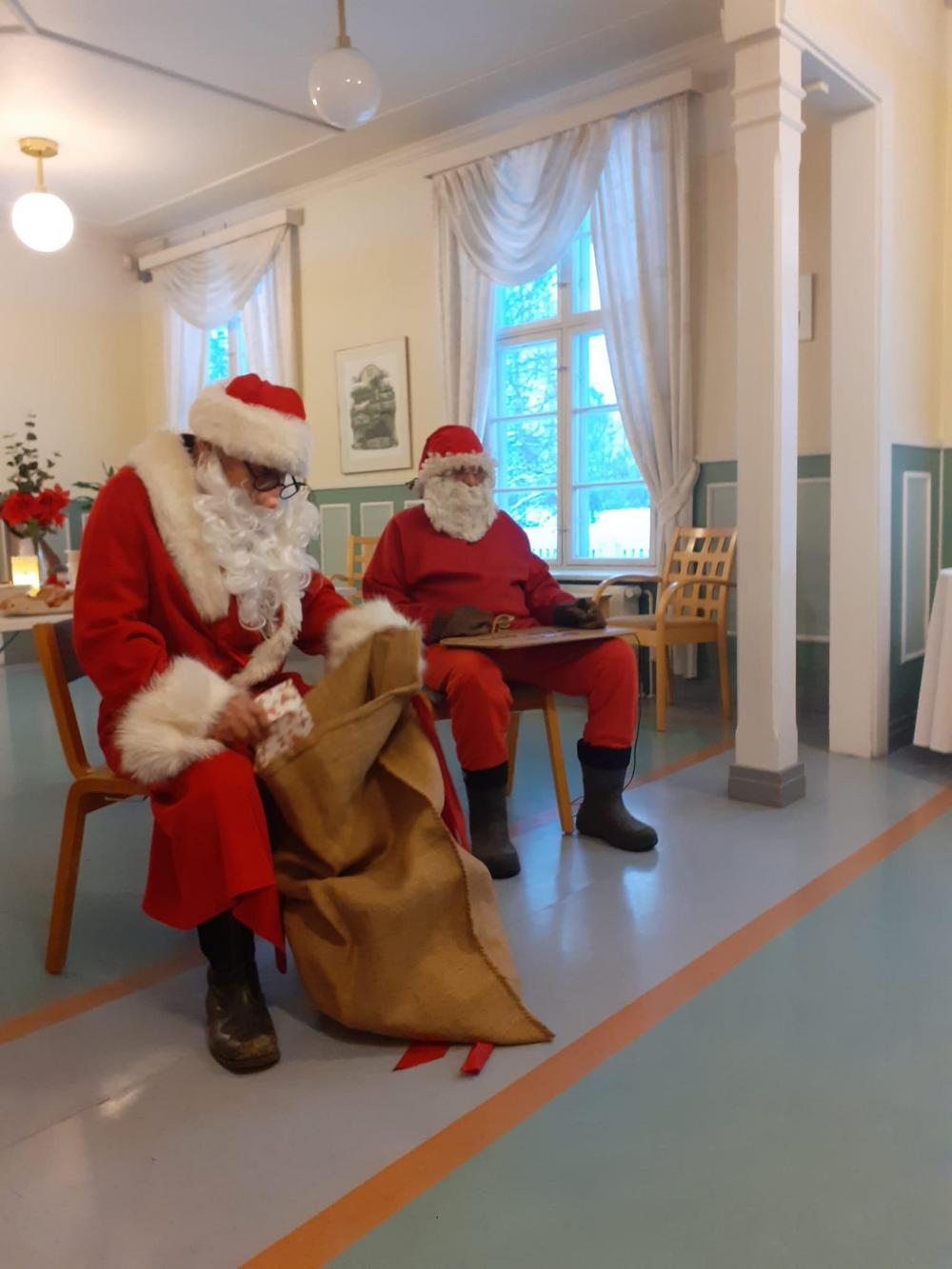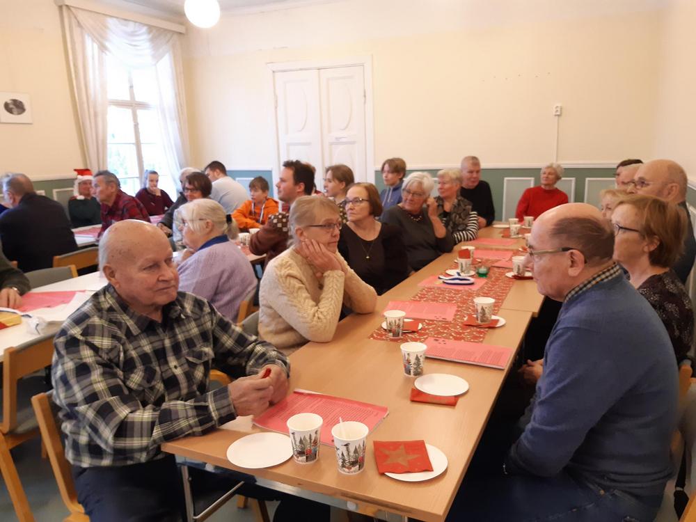 Parin Korona vuoden jälkeen vietimme perinteistä joulujuhlaa Takahuhdin seurakuntatalolla joulupukkineen, joululauluineen. Myrskyisen lumisateen keskelläkin oli osallistujia mukavasti tullut paikalle.