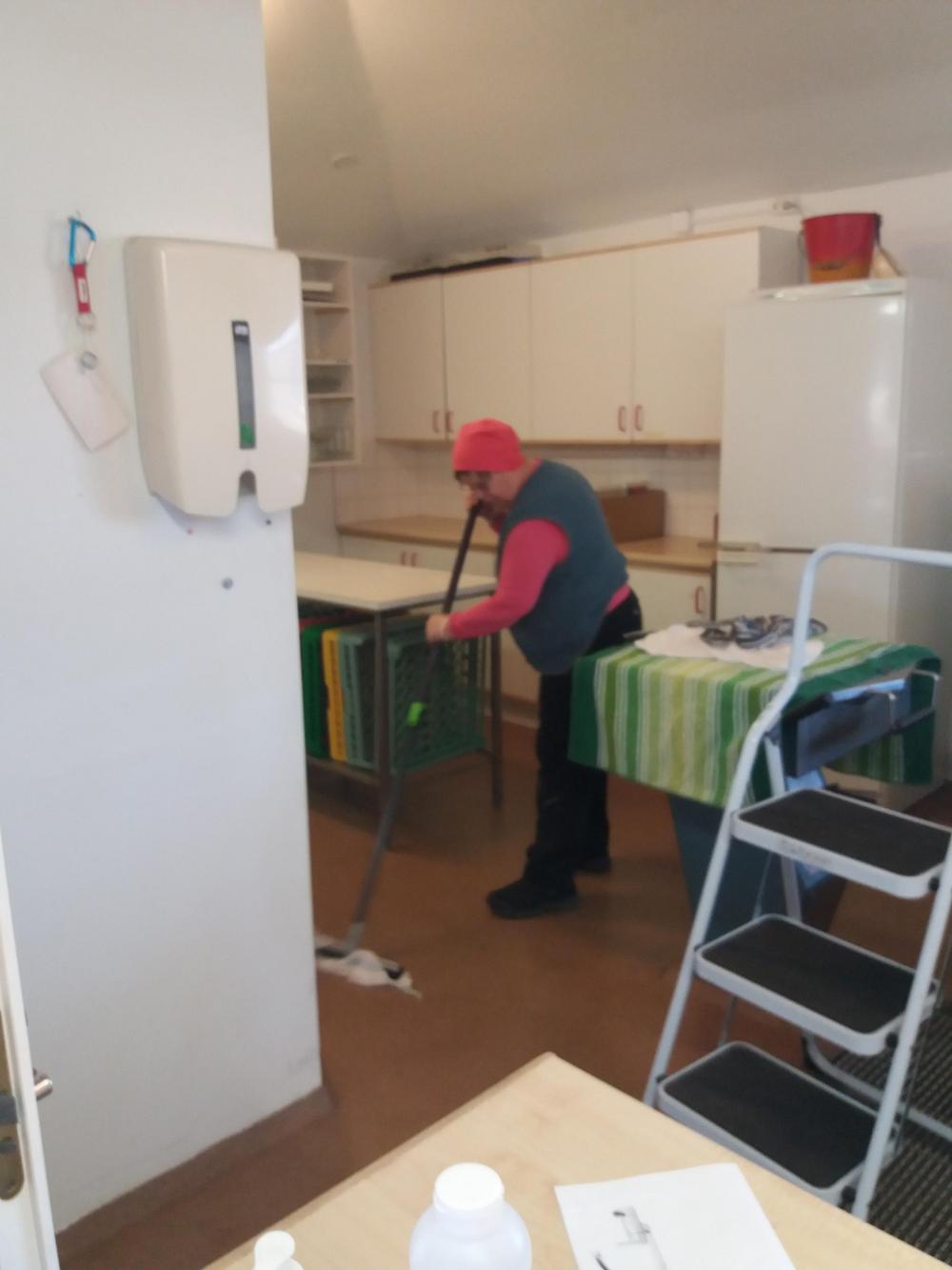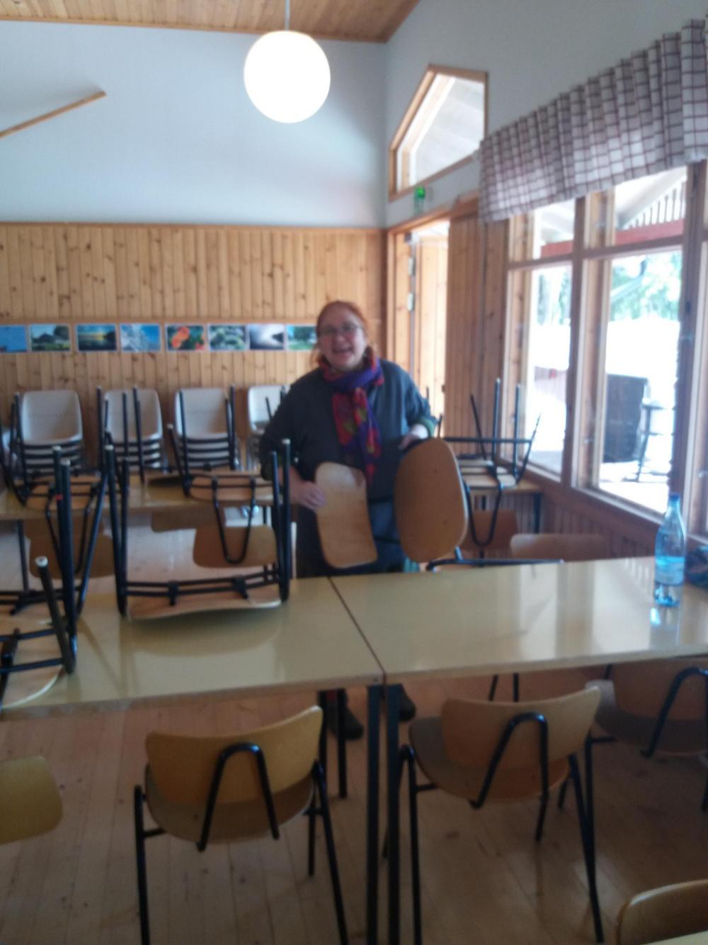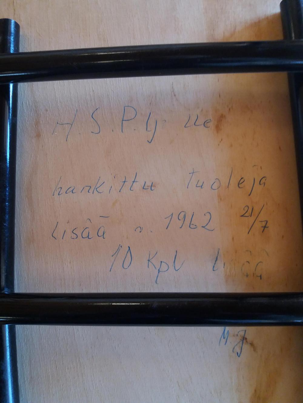 Kahvion siivoustalkoot. Kesä tulee, olemmeko valmiit?? Pistin tuohon tuolikuvaan kysymyksen, kuka on M.J. Piepe tiesi nimikirjaimien kuuluvan isälleen Matti Jokiselle, joka toimi yhdistyksen isäntänä 26 vuotta. No tietysti. Kiitos tiedosta.