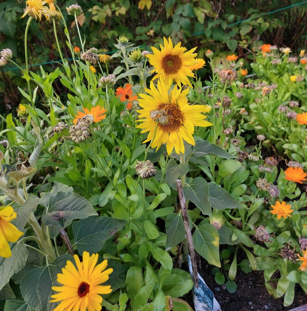 Kuluneen kesän yhteisökukka oli kehäkukka. Siemenpussit jaettiin postilaatikoihin, joillakin istutus onnistui, joillakin ei tullut yhtään kukkaa. Kuvia kukista lähetettiin kiitettävästi. Tässä kuvien satoa, etsi joukosta omasi.
