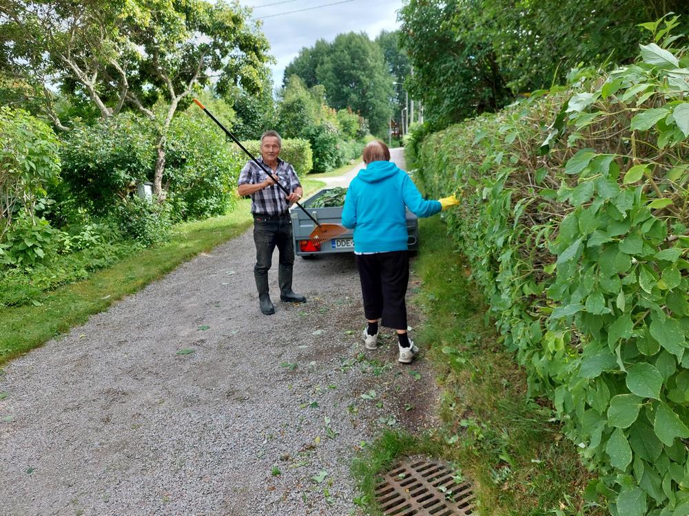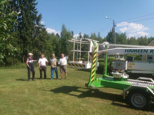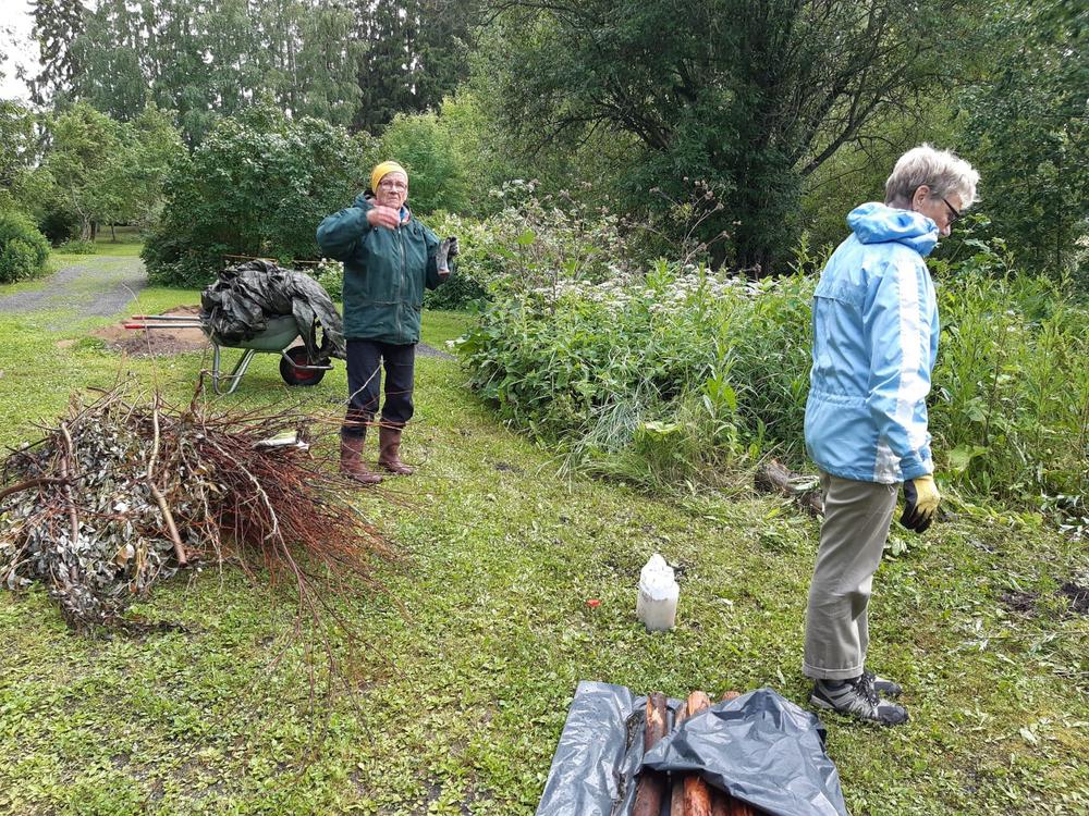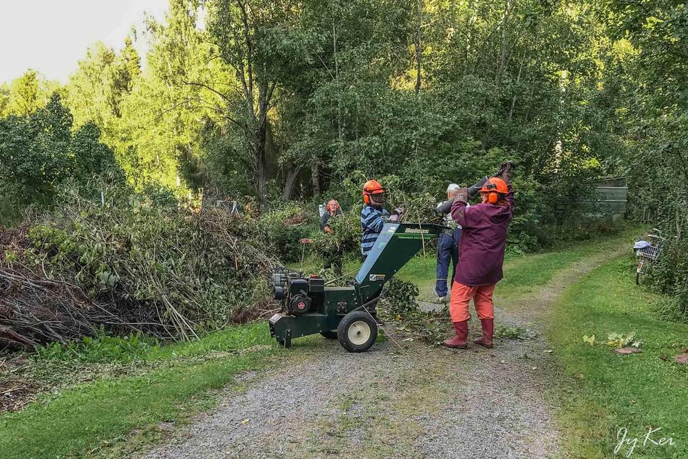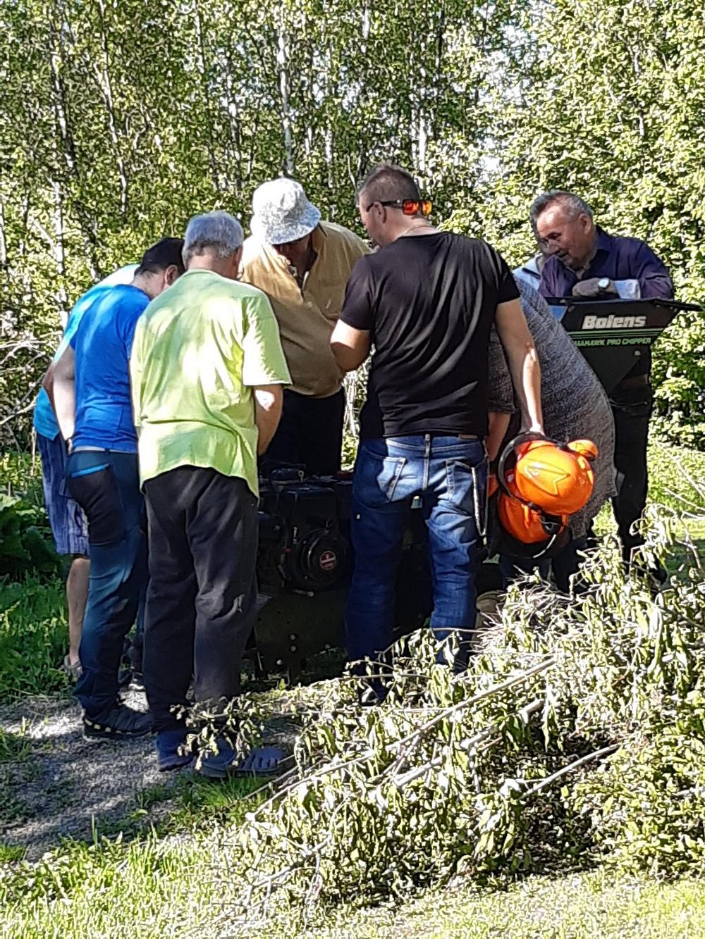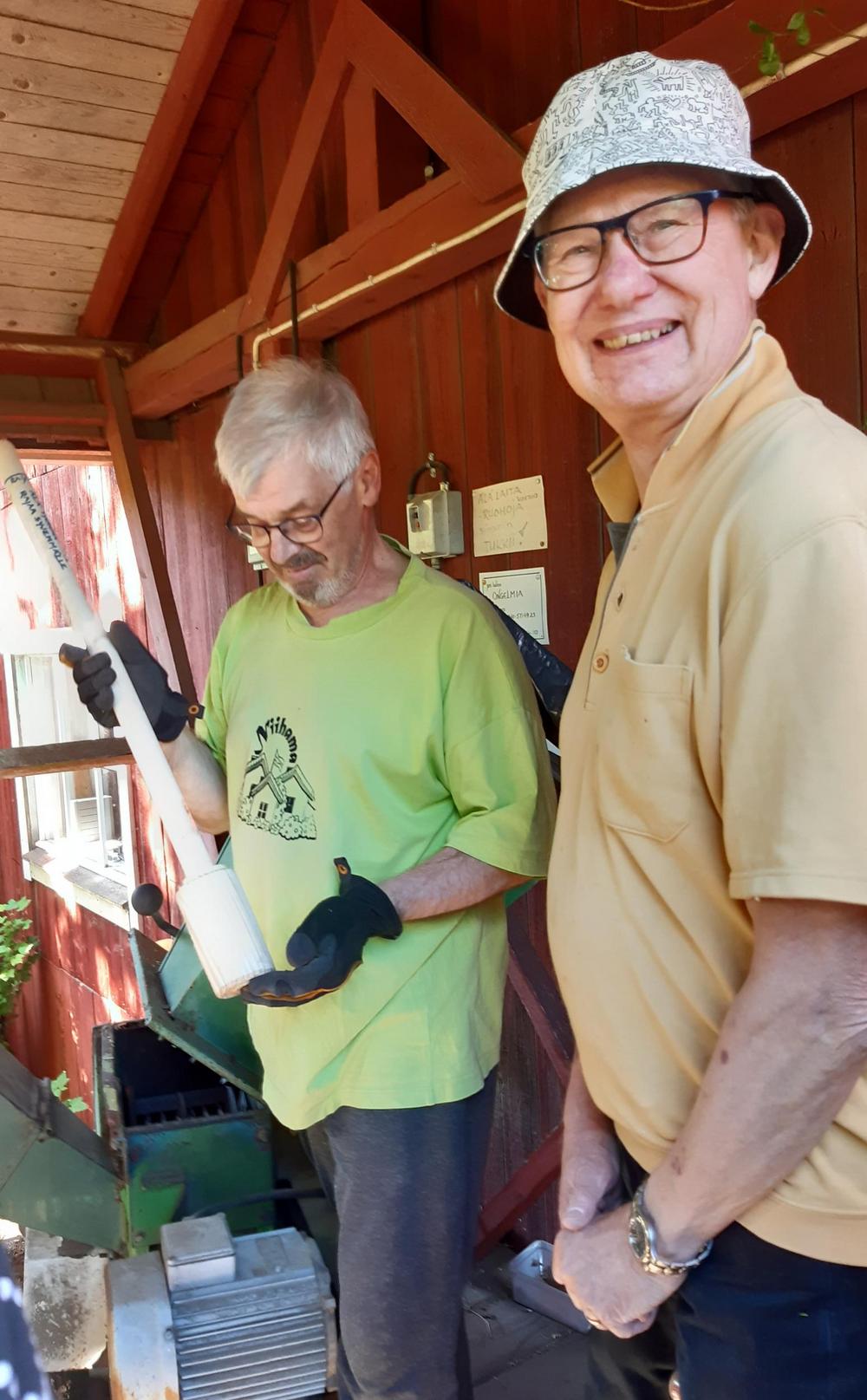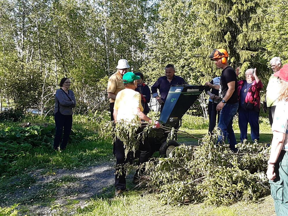 Tämä kesä on puutarhallamme erityisesti ympäristökesä. Ympäristövastaava Irmeli Nenonen on järjestänyt erilaisia teemailtoja eri aiheiden ympärille. 6.6. oli hakekoneen käytön opastusta. Opastajina Mäntyniemen Matti ja Isäntä Antti.