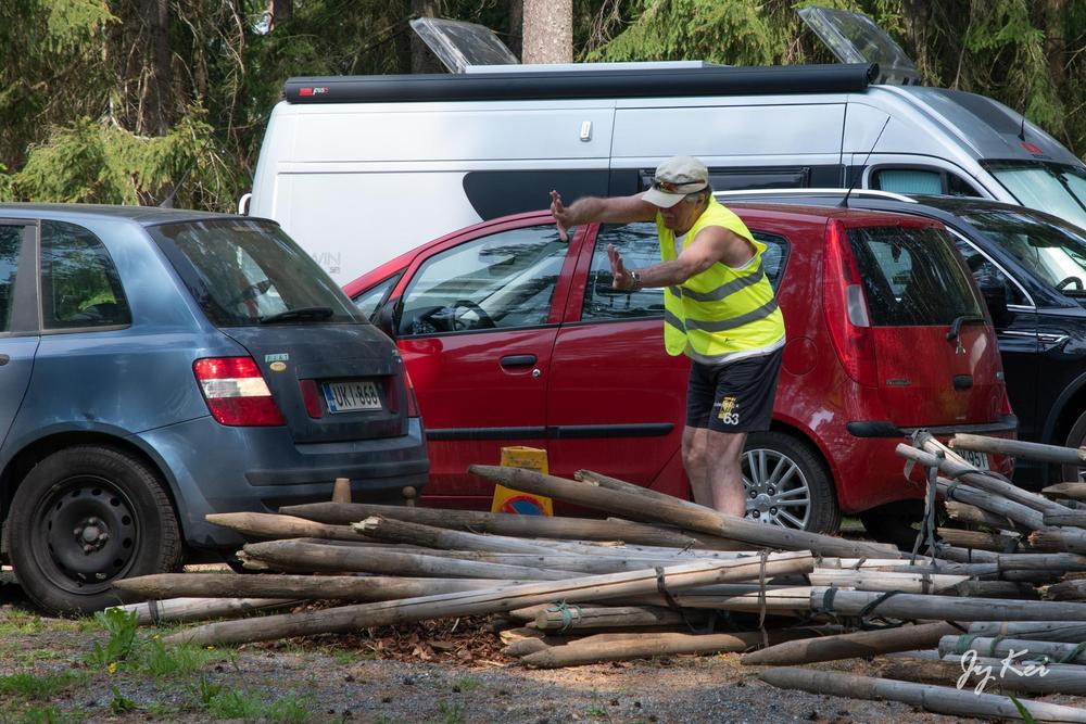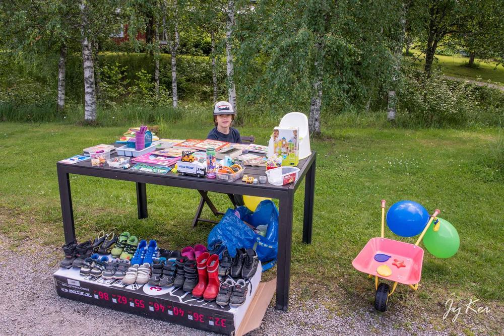 Palttalan Pekka tutussa hommassa, juhannusarpoja kauppaamassa. Satoja arpoja jo myyty, jatkoa seuraa juhannusaattoon asti, jolloin on arpajaiset.