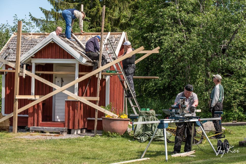Ei lopu työt yhdistyksen rakentajilta. Tänä kesänä on vuorossa vanhan vihreän saunan muuttaminen "miesten puuhatilaksi"