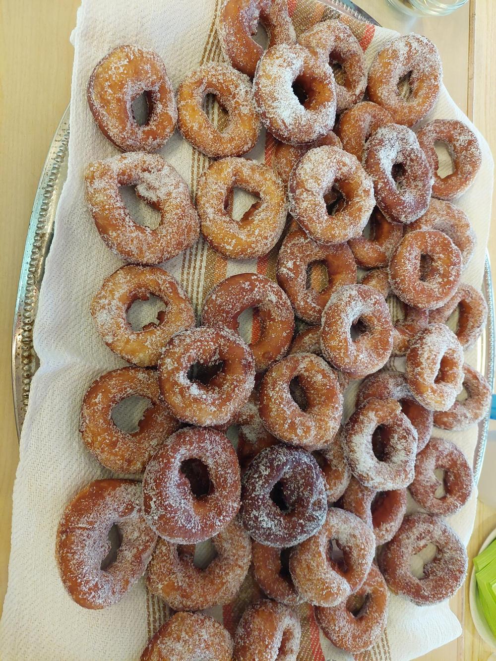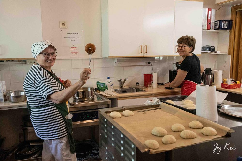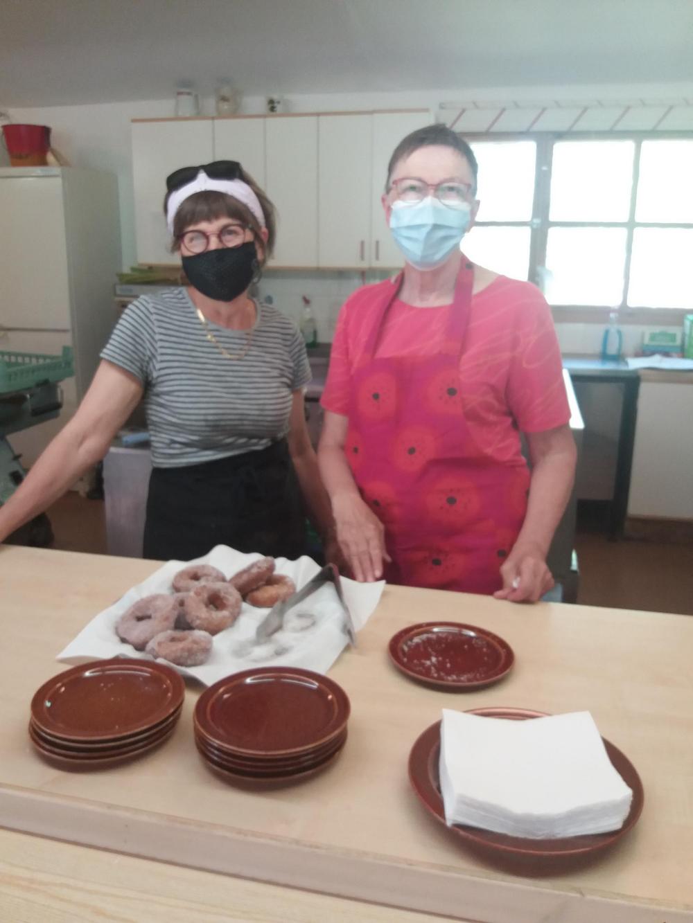 Tänä kesänä Merja ja Pirkko yhdistivät voimansa ja paistoivat yhdessä runsaat 160 munkkia. Pirjo ja Anna-Liisa toimivat myyjinä ja munkkikahveita jonotettiinkin urakalla. Hyviä olivat!