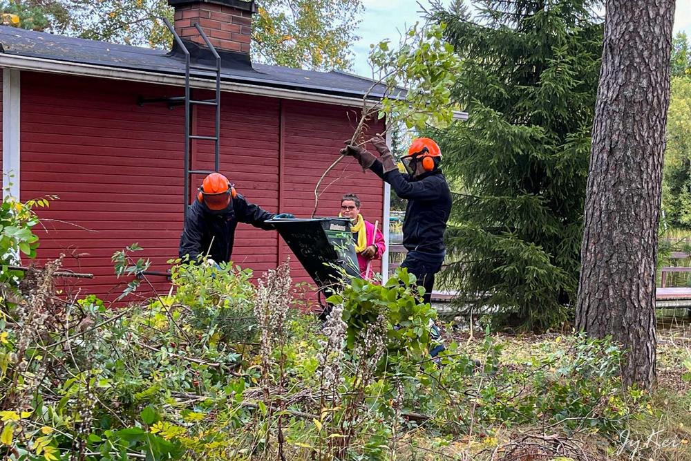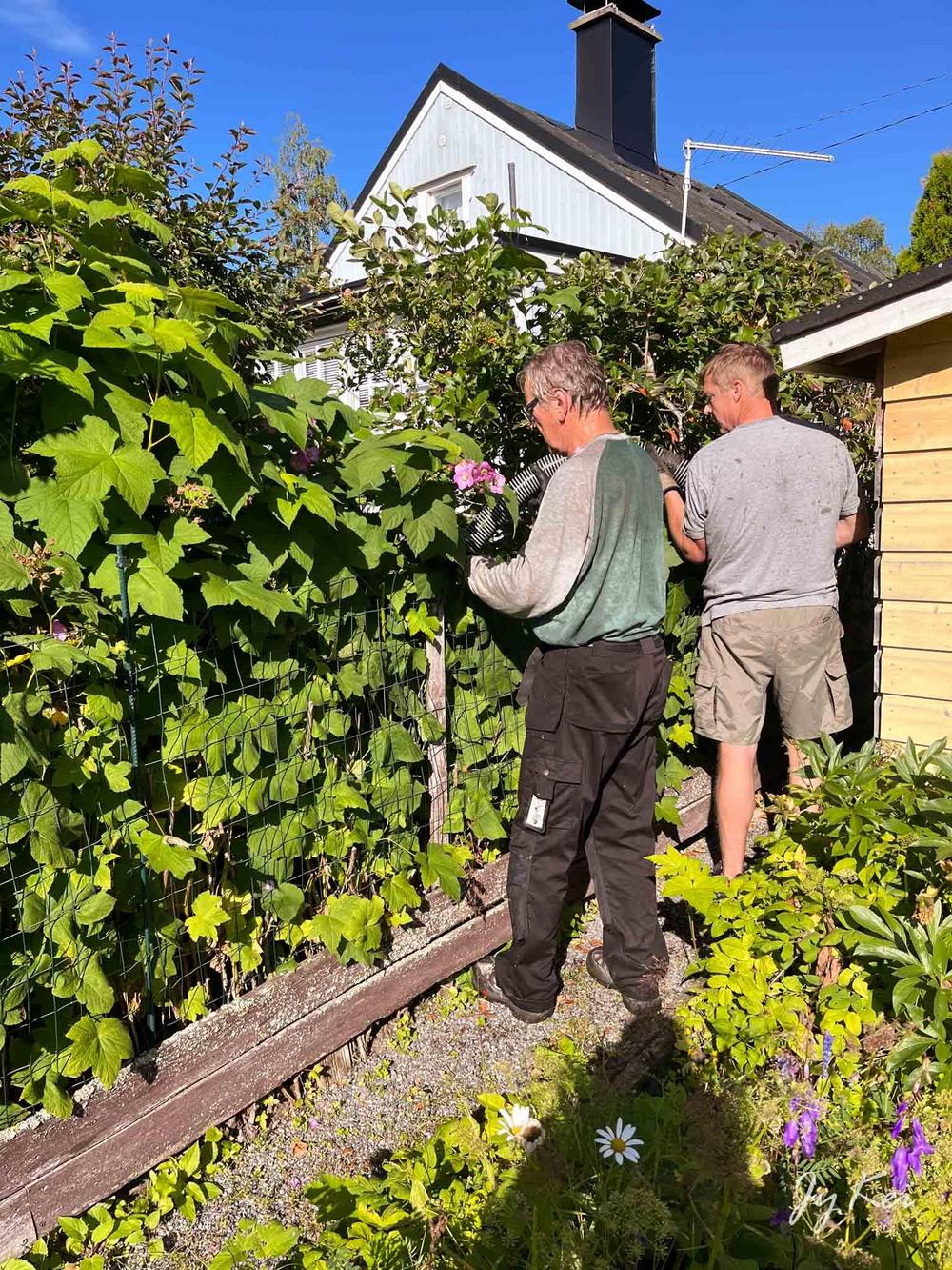 Koronan väistyttyä pääsi Repe ja Romukin vihdoin puutarhalle. Vanhat romut saivat kyytiä. Keivaaran Jyrki toimii edelleen valokuvaajanamme.