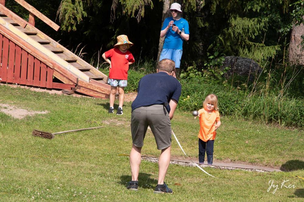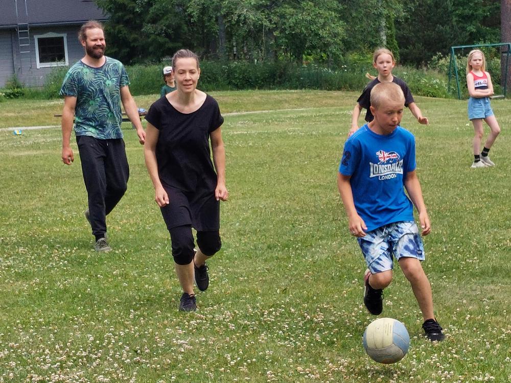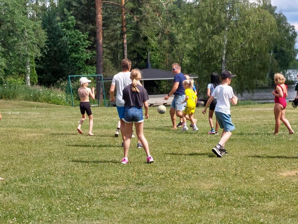 Juhannuspäivänä pelattiin ranta-alueella monenlaisia pelejä. Varttuneemmat pelasivat petankkia, lapset pelasivat aikuisia vastaan jalkapalloa, ja lopuksi vielä kokoontui myös lentopalloporukka. Niihamassa on aktiivista porukkaa. Mikä on ollessa, kun ilmat suosivat.