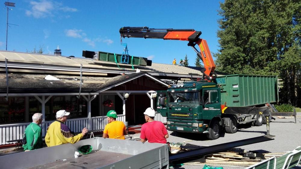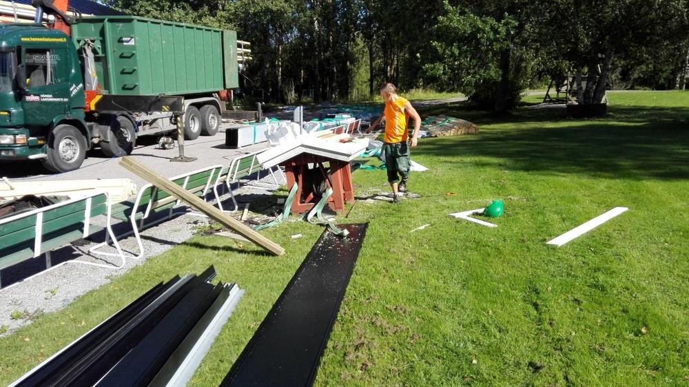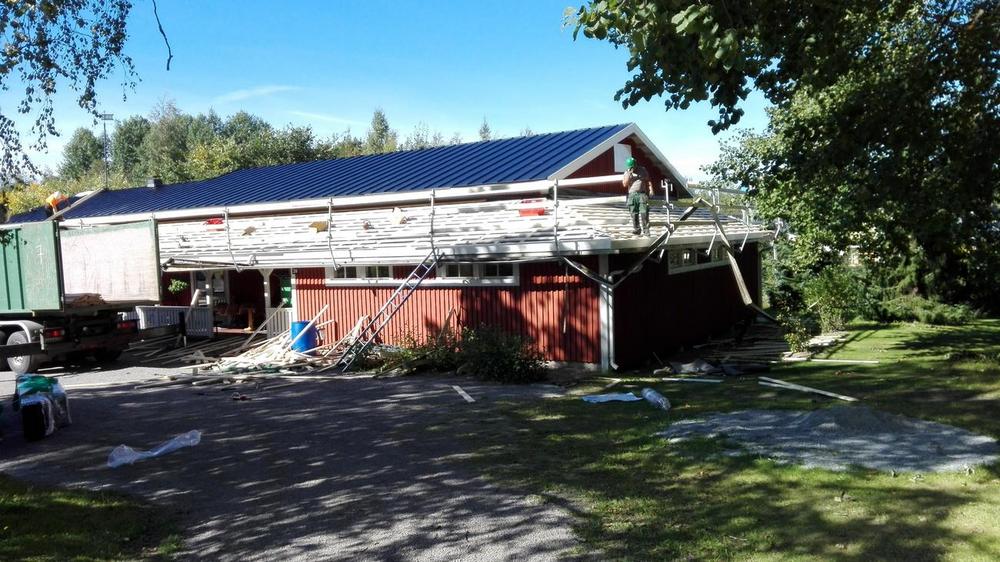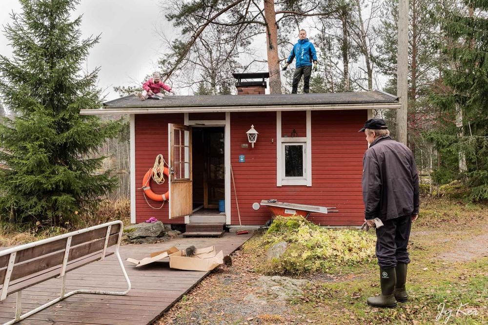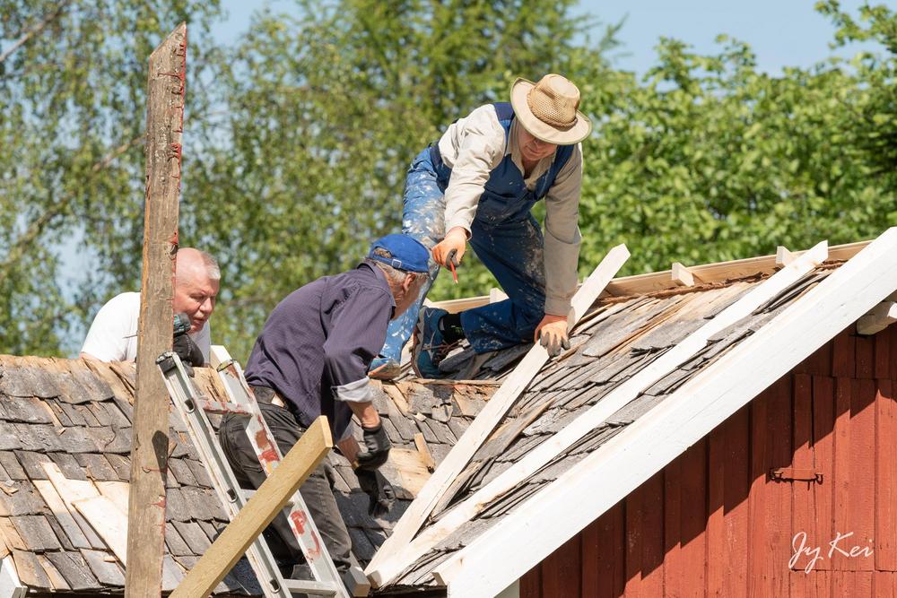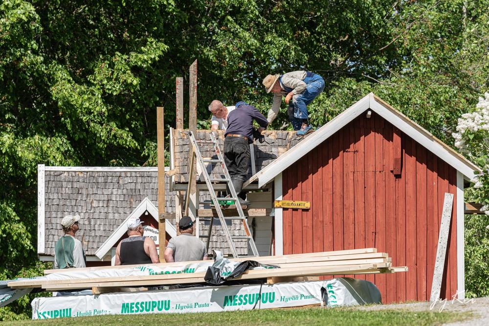 Museomökkien pärekatot eivät kestäneet. Rakentajaryhmä lähti vaihtamaan niihin huopakatot.