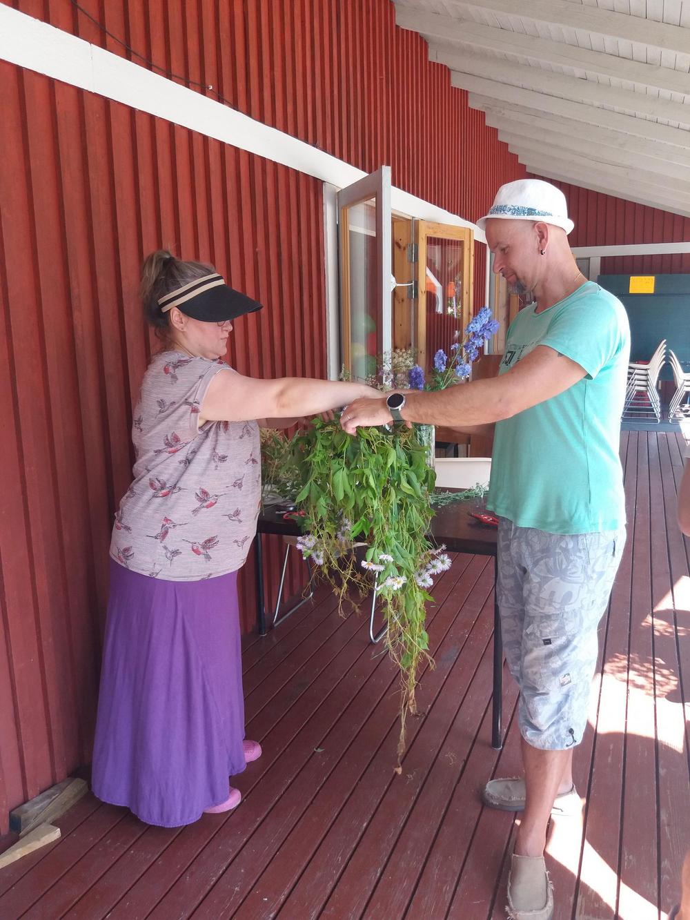 Ukrainaa muistelimme tänä kesänä sen kärsiessä sodasta. Meille jaettiin postilaatikoihin auringonkukan (Ukrainan kansalliskukka) siemeniä, jotka istutimme ja toivoimme niiden kasvavan. Joidenkin istutus onnistui, joidenkin ei. Puputkin kukkien varsista pitivät. Tähän on talletettu saamamme kuvat eri mökkien erilaisista kukista. Korkein kukka taisi olla Penttilän mökin numero 39 kukka, joka kasvoi 320 senttiseksi, ei kuitenkaan suostunut kukkimaan. Usealla pihalla vielä odotellaan kukkaa. Kuvien lähettäjien kesken järjestettiin arvonta, jossa elokuvaliput voitti Keivaaran pariskunta, Ruuskasen Raija ja Pertti voittivat auringonkukkaöljyä ja Penttilät Niihama kortteja. Mukava kilpailu, mitähän ensi vuonna. Toivottavasti sota on jo silloin ohi.