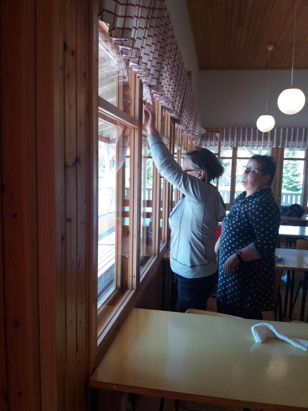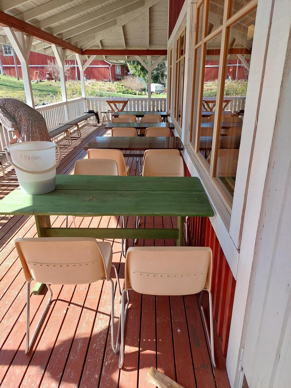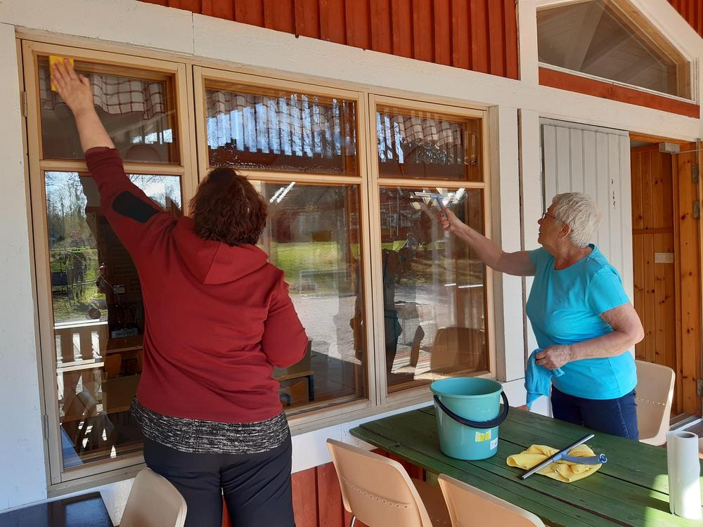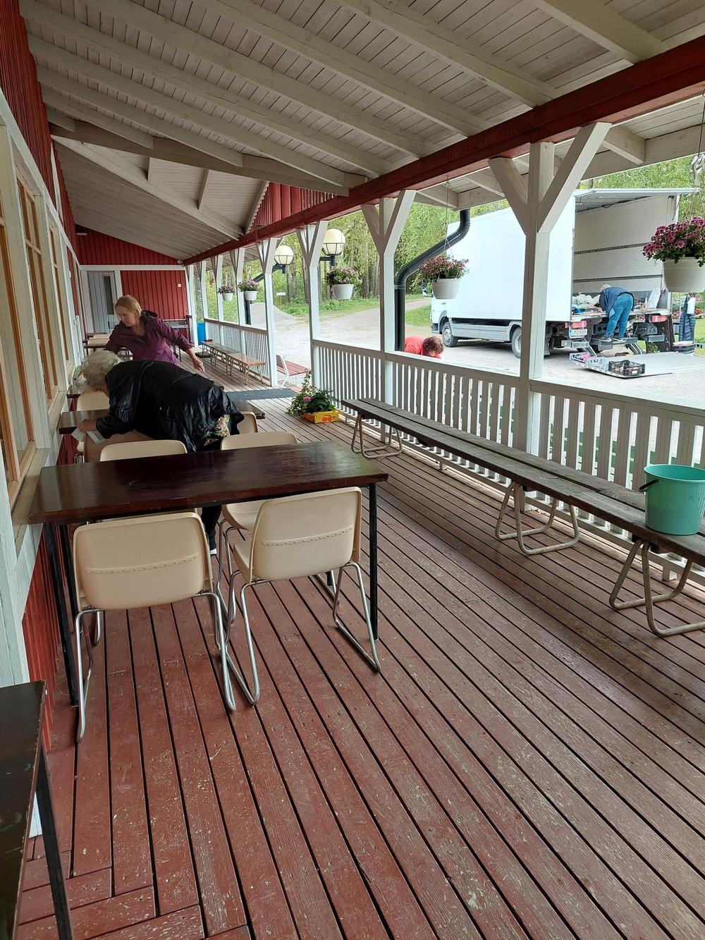 Toukokuun 12.päivänä pääsimme komeassa säässä siivoamaan kahviota kesäkuntoon. Puhdasta tuli!