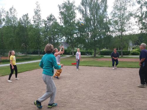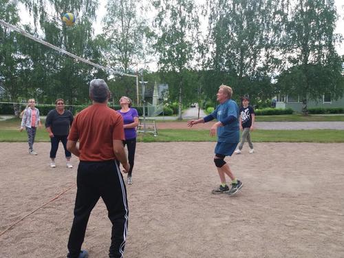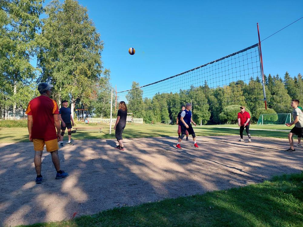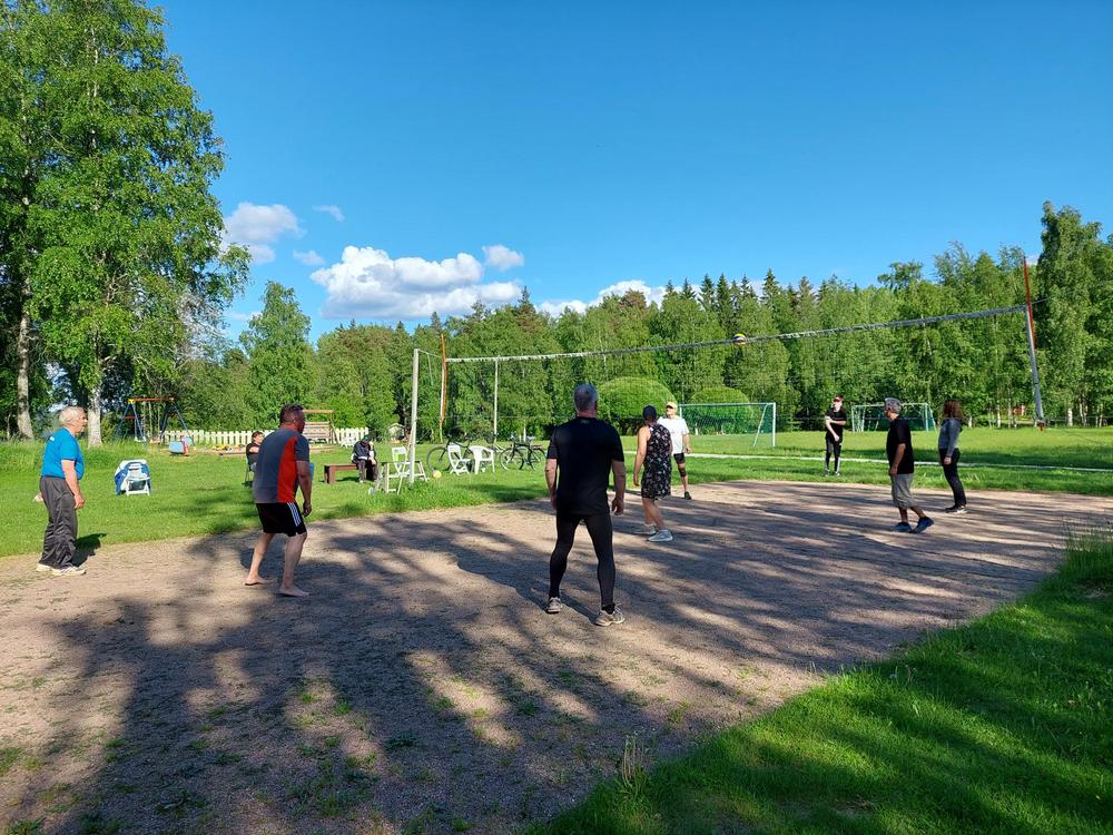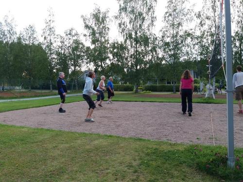 Lentopallon pelaaminen aloitettiin heti kesäkuun alussa. Lämpötila alle +10, ei ihan sortseissa vielä pelaaminen onnistunut. Kauden alkamista oli selvästi jo odotettu.