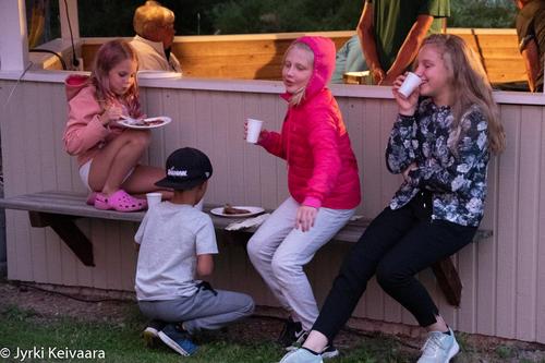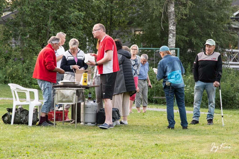 Kesä kallistuu kohti loppuaan. Elokuun viimeisenä viikonloppuna vietetään Näsintulia. Matti ja Tuomo paistoivat tavan mukaan lättyliiterillä lättyjä, joita isolla joukolla saavuttiin jonottamaan. Rantaan oli tuotu pöytiä ja tuolejakin, jotta oli helpompi pysähtyä syömään ja seurustelemaan. Sade tuli vasta pimeän koittaessa.