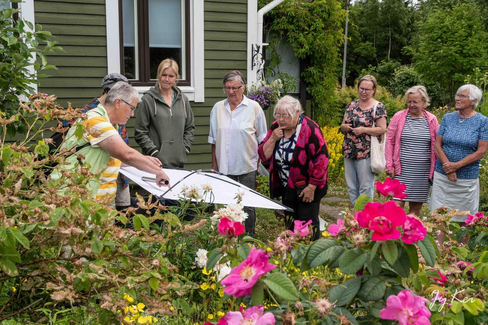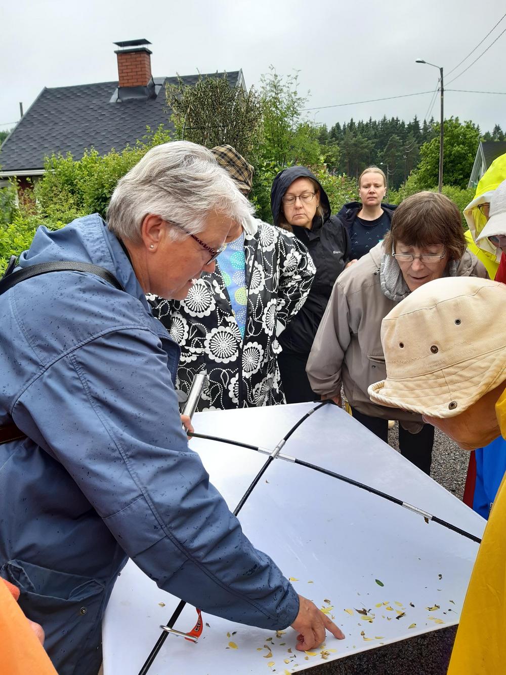 Sateesta huolimatta yli 20 viljelijää osallistui Siirtolapuutarhaliiton järjestämään puutarhakävelyyn 1.7. Biologi Leena Luoto opasti meitä taas luonnonmukaisen puutarhanhoidon saloihin.