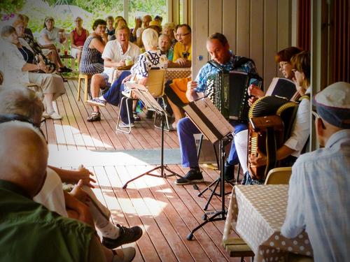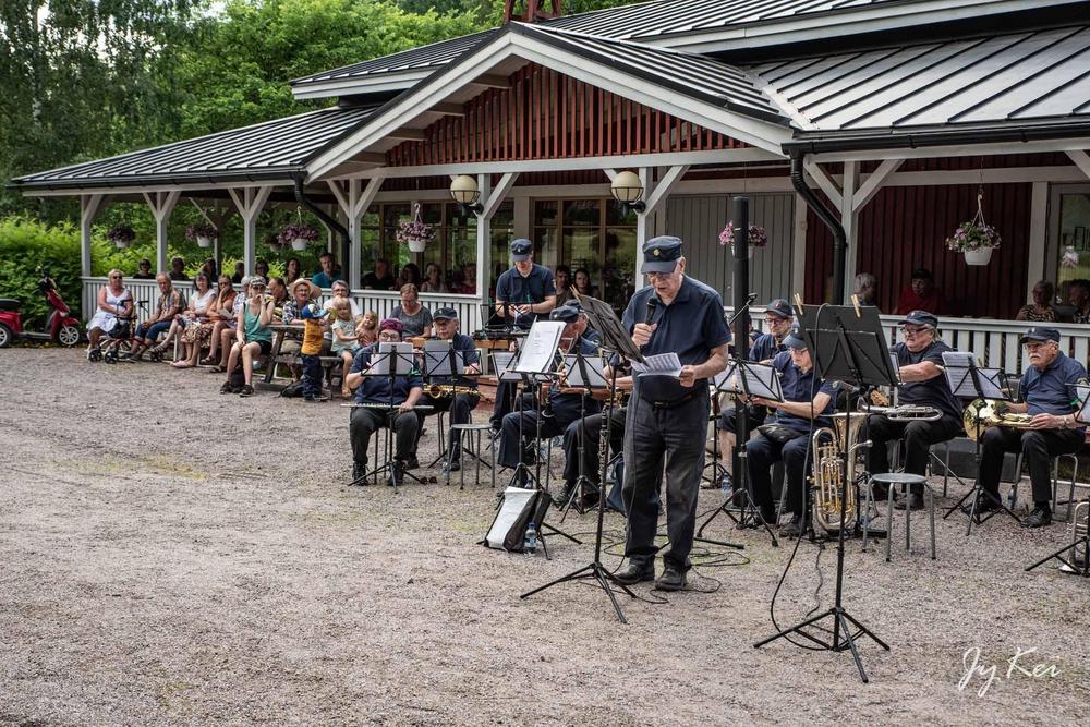 Odotettu VPK:n puhallinorkesteri vieraieraili tänäkin kesänä puutarhallamme. Pullakahvipalkalla. Hieno orkesteri!