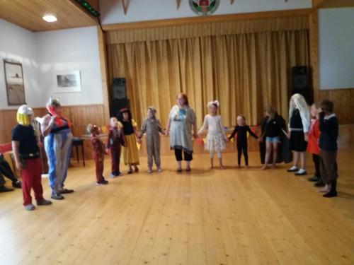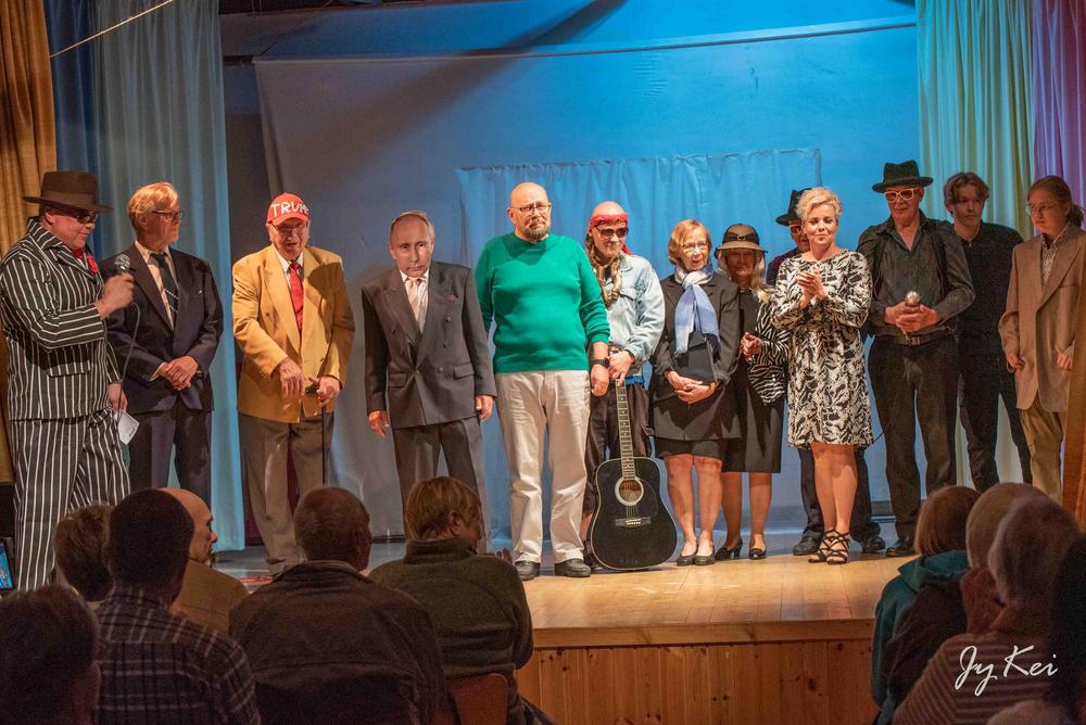 Illalla oli juhla, jossa oli vähän ohjelmaa ja lopuksi orkesteri soitti tuttua musiikkia.