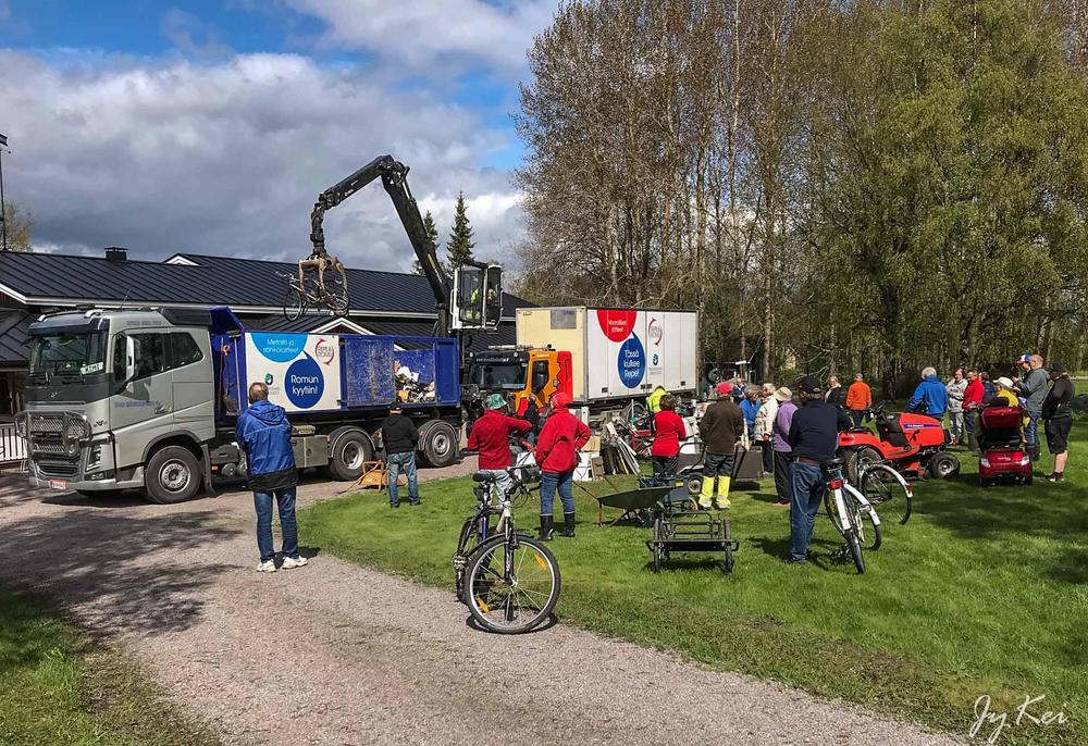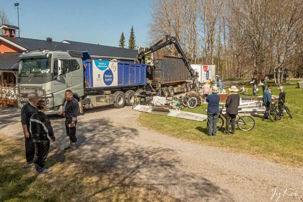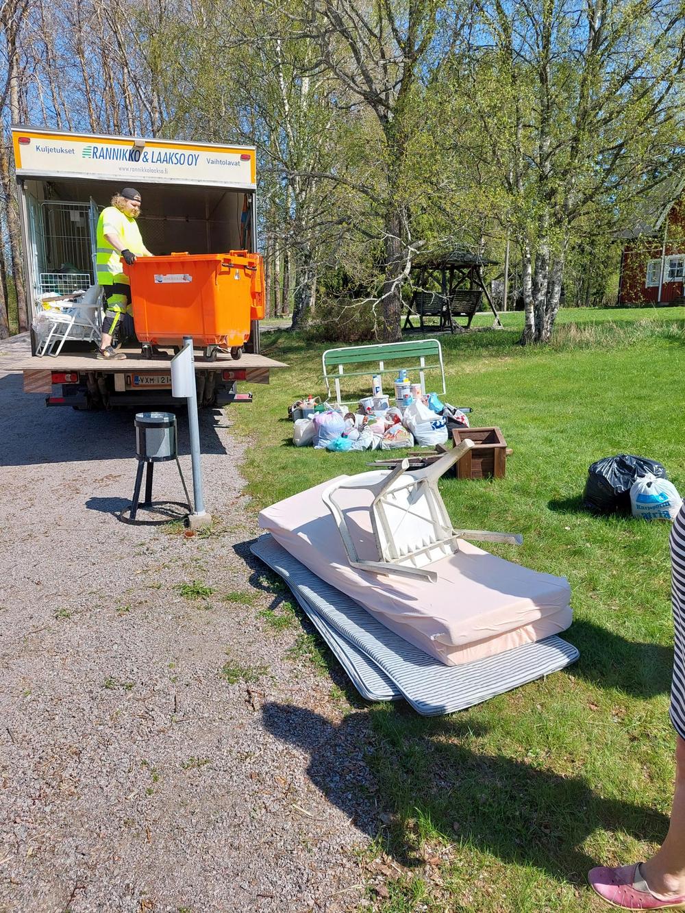 Repe ja Romu vieraili alueellamme 20.5. Kummasti aina sille riittää pois vietävää romua. Nyt sai Kartanon iso rautainen vaatenaulakkokin kyytiä.