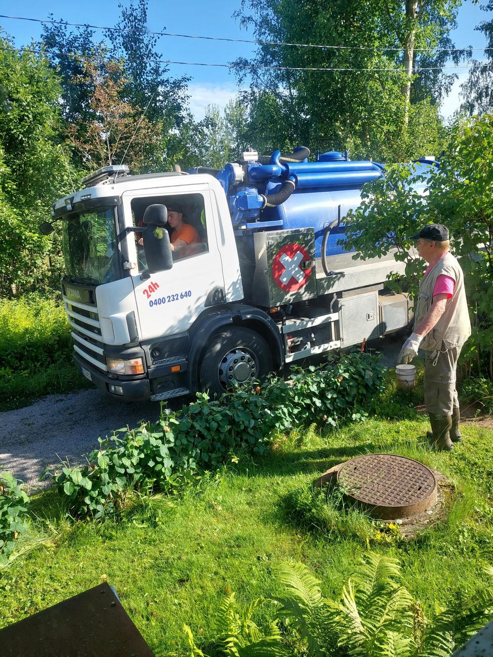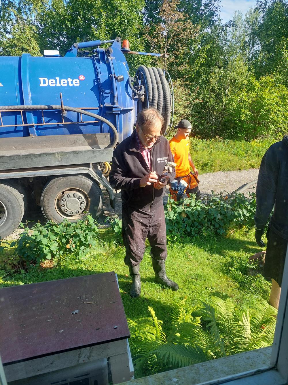 Puutarhan 126 kaivoa tyhjennetään joka kolmas vuosi. Suunnittelupalaveri pidettiin edellisenä päivänä. Kaksi isoa imuautoa tuli alueelle aamulla ja lähti pitkin kapeita väyliämme avustajaryhmiensä kanssa. Kaikki kaivot kuvattiin jotta saatiin kuva, millaisia ne ovat. Joidenkin tonttien kaivot olivat kuulemma vaikeat löytää pusikoiden vuoksi. Kaikki kuitenkin onnistuttiin löytämään, kuuden tunnin urakka saatiin päätökseen.