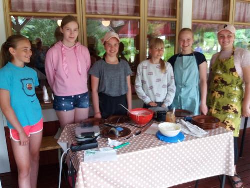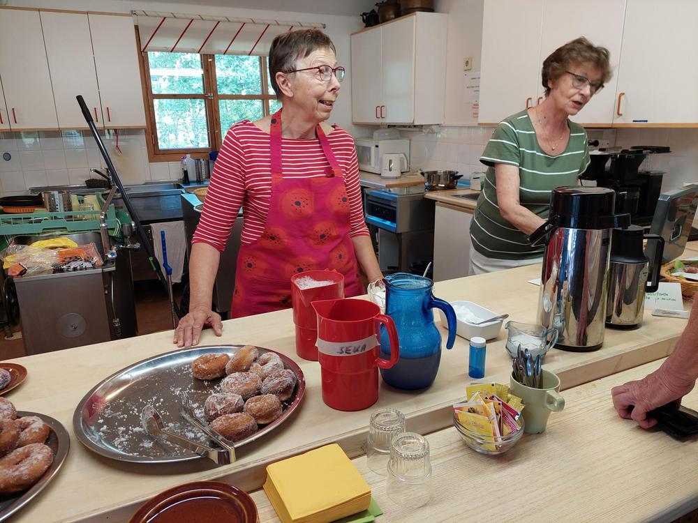 Munkkikahvila toimi tänäkin kesänä. Pirkko, Merja, Anna-Liisa ja Pirjo hommissa