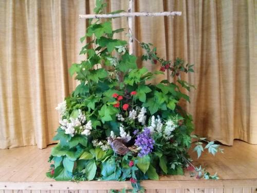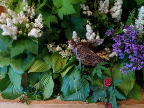 Kartanolla järjestettiin kirkonmenot 6.8. Pirjo ja Paula loihtivat jälleen näyttämölle kauniin alttarikoristeen. jumalanpalveluksen jälkeen joimme Messukylän seurakunnan tarjoamat kirkkokahvit.