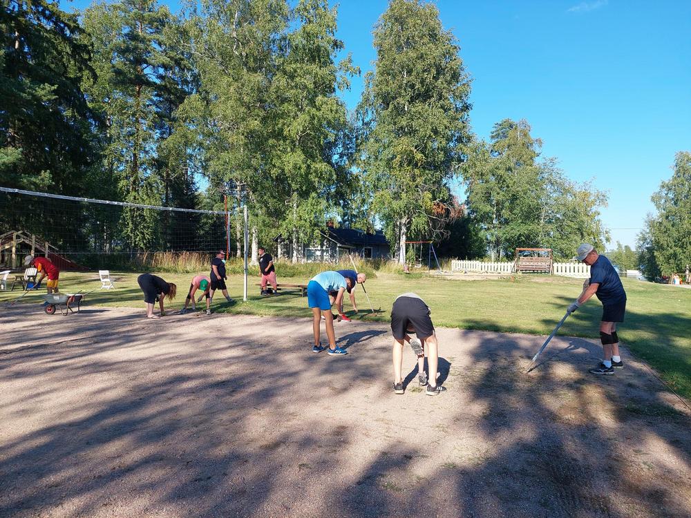 Joka maanantai pidettäviin talkoisiin on aina löytynyt innokasta porukkaa. Talkoita tehdään myös "omalla ajalla". Jätekatosta siistittiin, lasten liukumäki sai uuden maalin. Antti ei kuntosalia tarvitse, joka vuotinen puushow jatkuu....
