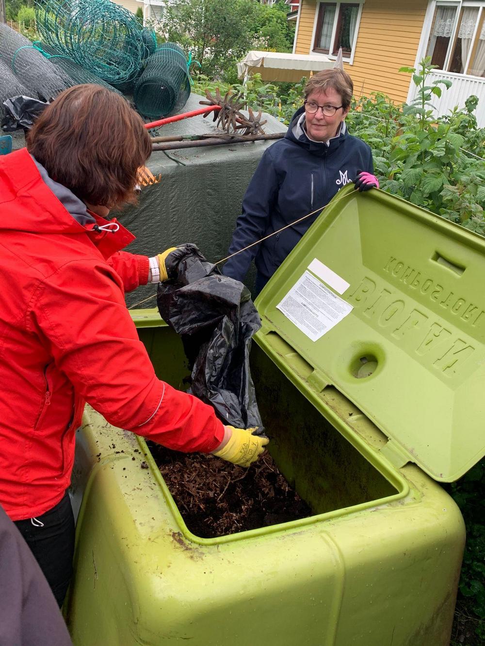 Pirkanmaan Martoista tuli Essi Pietilä opastamaan kompostin perustamista.