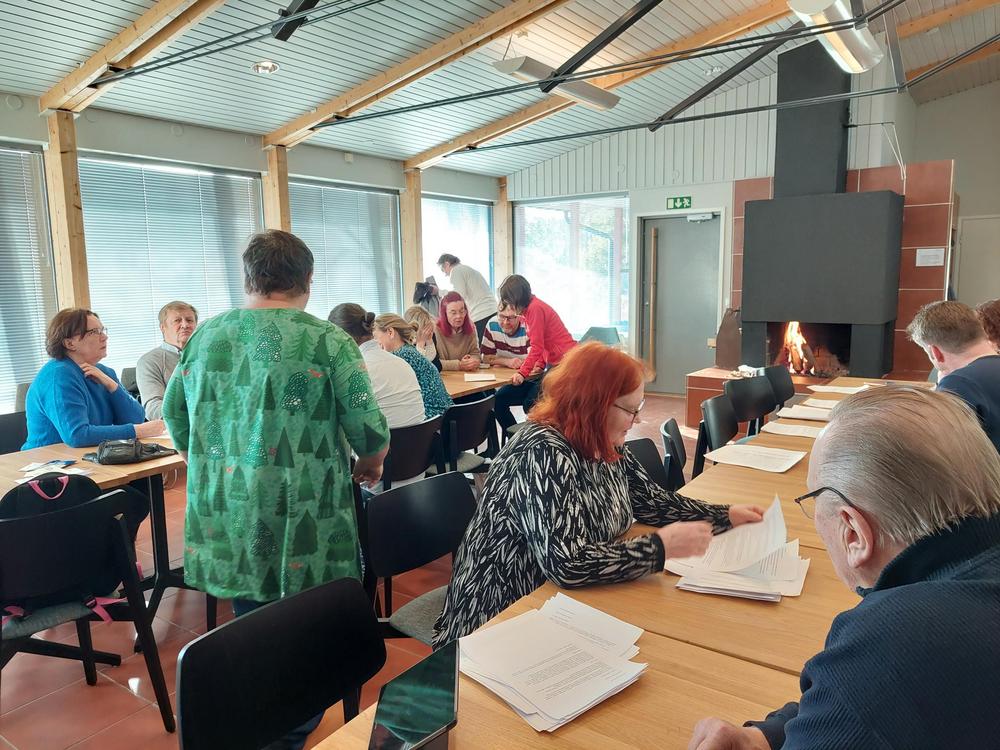 5.4. lähti 22 innokasta niihamalaista suunnittelemaan ja ideoimaan, miten talkoita eli yhteisötöitä jatkossa tehdään/teetetään. Varalan sauna tarjosi mukavat puitteet. Tarjolla oli sopivasti syötävää ja juotavaa, tulostakin tuli. Lopuksi oli halukkailla mahdollisuus saunoa ja nauttia avannosta. Jatkoa tällaiselle toiminnalle toivottiin. Kuvat otti yhdistyksen puheenjohtaja, Pousin Pirkko.