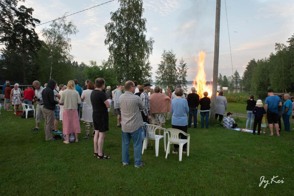 Tänä vuonna saimme viettää koko juhannuksen lämpimässä, jopa helteisessä säässä. Lipunnoston jälkeen Niemelän Minna toivotti hyvää juhannusta yhdistyksen hallituksen puolesta. Tuttu miestrio esitti musiikkia ja runoja. Kokon sytytti isäntä Antti, rannalle oli suuri joukko juhlijoita saapunut sitä katsomaan. Ihana, perinteinen Niihaman juhannus.